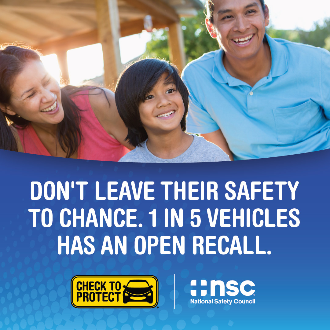 All vehicles – old and new – can be affected, and safety recall repairs are always free at authorized dealerships. We hope you’ll take a minute to check your vehicle’s recall status at www.CheckToProtect.org (you can search by license plate or VIN), and we encourage your networks to do the same!